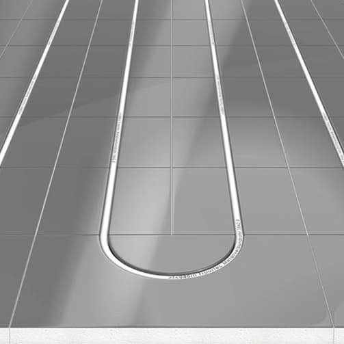 Zusätzliches Plus: Durch die handlichen und kompakten Abmessungen der Systemteile ist eine rasche Installation der Fußbodenheizung gewährleistet. Das FLOORTEC Trockensystem ist mit den Verlegeabständen 12,5 und 25 cm erhältlich.